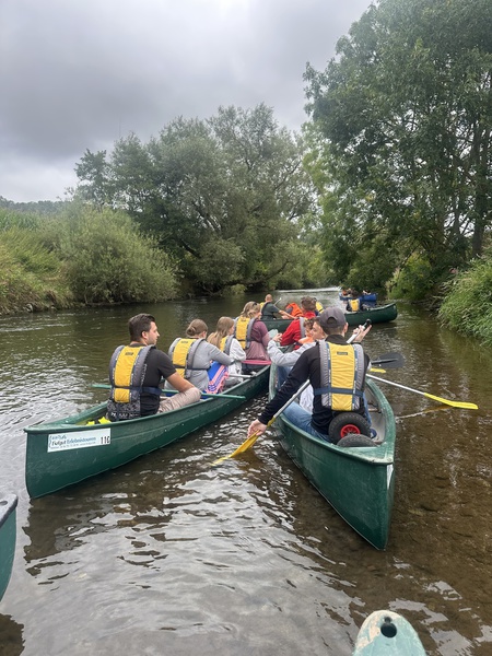 Organisiert wurde das Abenteuer über das Hofgut Stammen, das mit einer gut geplanten Strecke und der passenden Ausrüstung beste Voraussetzungen für einen gelungenen Tag bot. Nach einer kurzen Einweisung hieß es: „Leinen los!“ – und die Jugendlichen paddelten in mehreren Gruppen die idyllische Diemel hinunter.